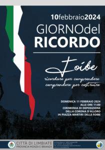 L’Amministrazione comunale di Limbiate, in occasione del Giorno del Ricordo 2024, ha organizzato un momento di commemorazione in onore dei martiri delle Foibe nella mattina di domenica 11 febbraio 2024, alle ore 11.00 presso piazza Martiri delle Foibe.