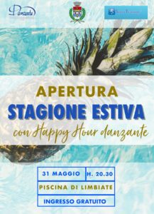 Ad animare l’evento l’esibizione di danza a cura di Danzarte, che con le sue ballerine e i suoi ballerini offrirà uno spettacolo (ore 20.30) ideato appositamente per celebrare l’imminente apertura estiva del parco acquatico limbiatese.