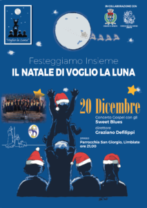 Festeggiamo il Natale insieme al gruppo di “Voglio la Luna“, che per la serata di venerdì 20 dicembre 2019, alle ore 21.00, propone un concerto gospel con gli “Sweet Blues” diretti da Graziano Defilippi alla Parrocchia San Giorgio di Limbiate.