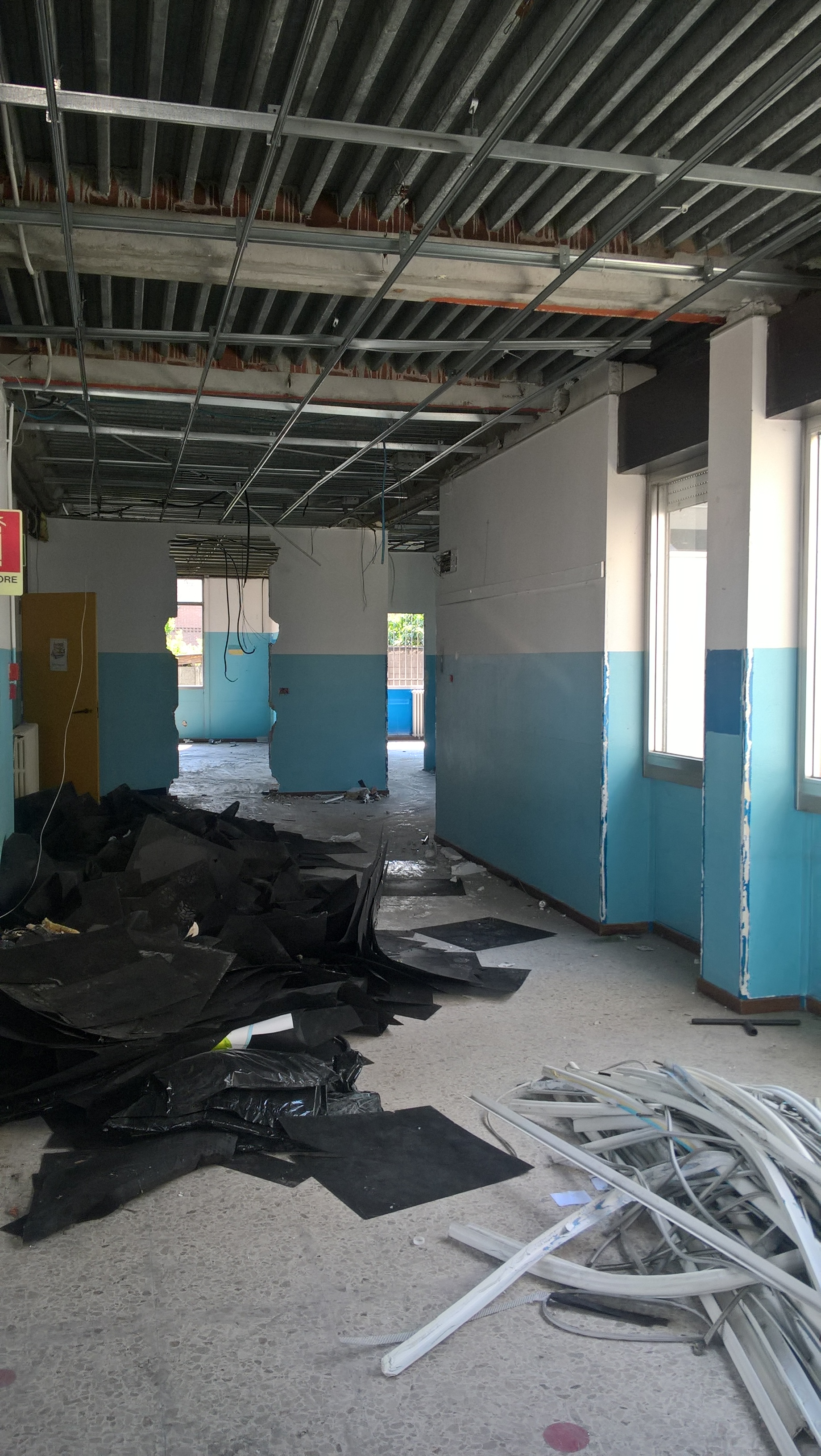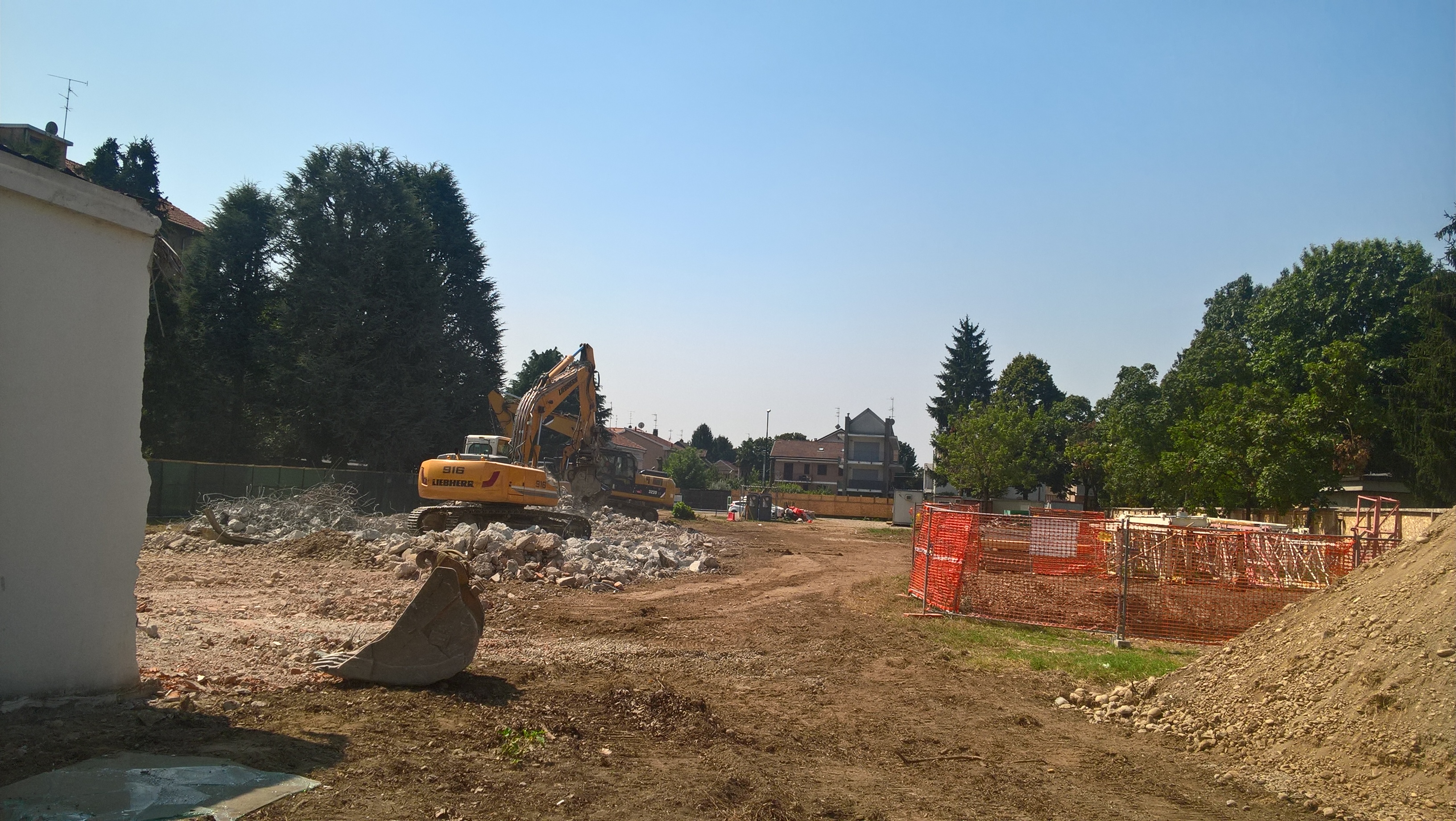 Le ruspe sono al lavoro all’interno del cortile della scuola Anna Frank di via Torino. Nelle ultime settimane, si è provveduto a svuotare i locali, a demolire la mensa, ad abbattare gli infissi (porte e finestre) del vecchio edificio e, prima della chiusura del cantiere per le ferie estive (dall’11 al 24 agosto), saranno demolite anche le pareti della palestra.