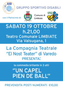 Sabato 19 ottobre 2019, alle ore 21.00, andrà in scena presso il Teatro Comunale di via Valsugana lo spettacolo “Un capel pien de ball“, commedia brillante in 3 atti a cura della compagnia teatrale “El Nost Teater” di Varedo.